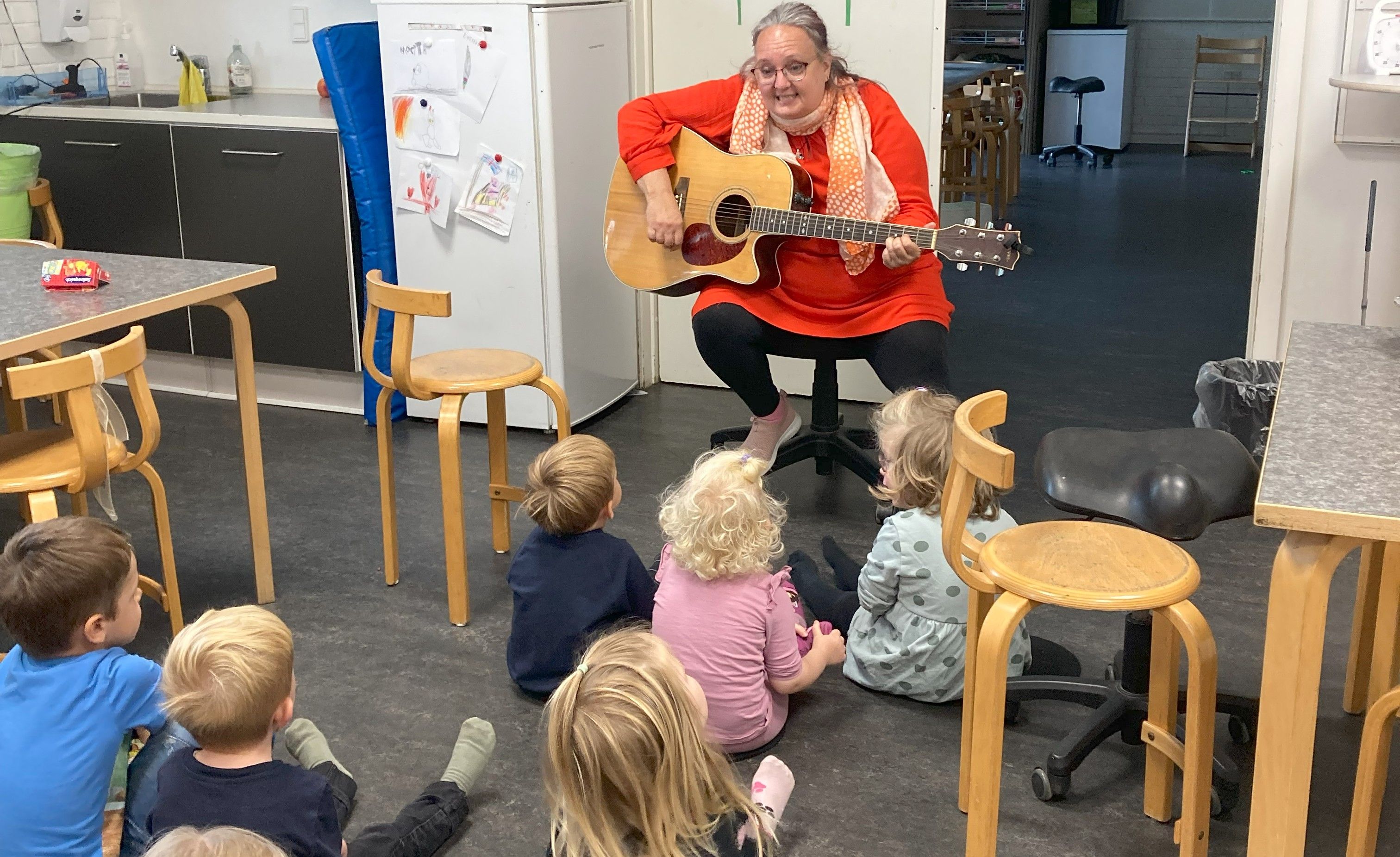 - Det var spot on. Efter en medarbejder var gået på pension, stod vi netop og manglede en pædagog, der kunne spille guitar, så da Tina kom med sit ønske, slog vi til med det samme, fortæller han.