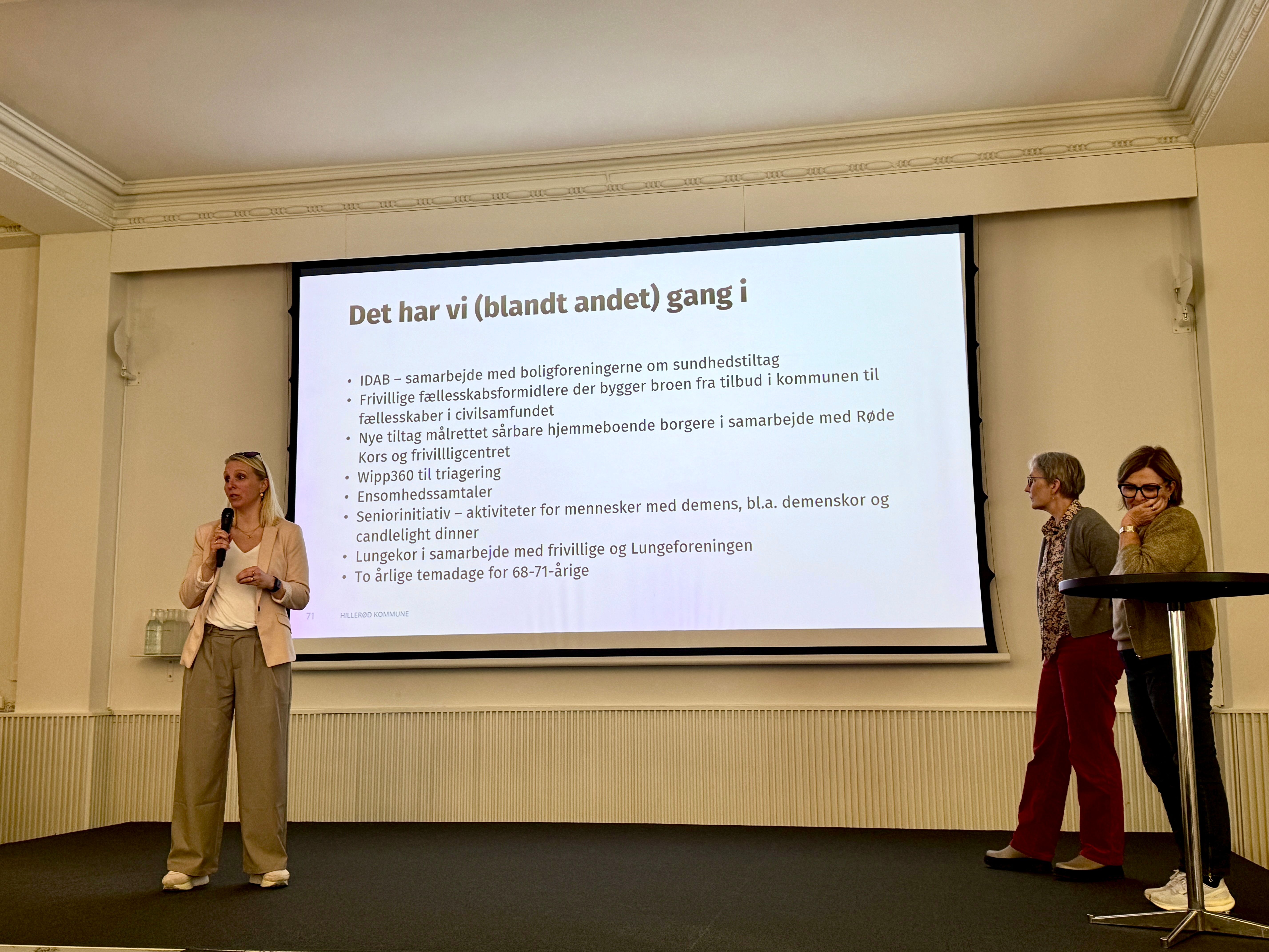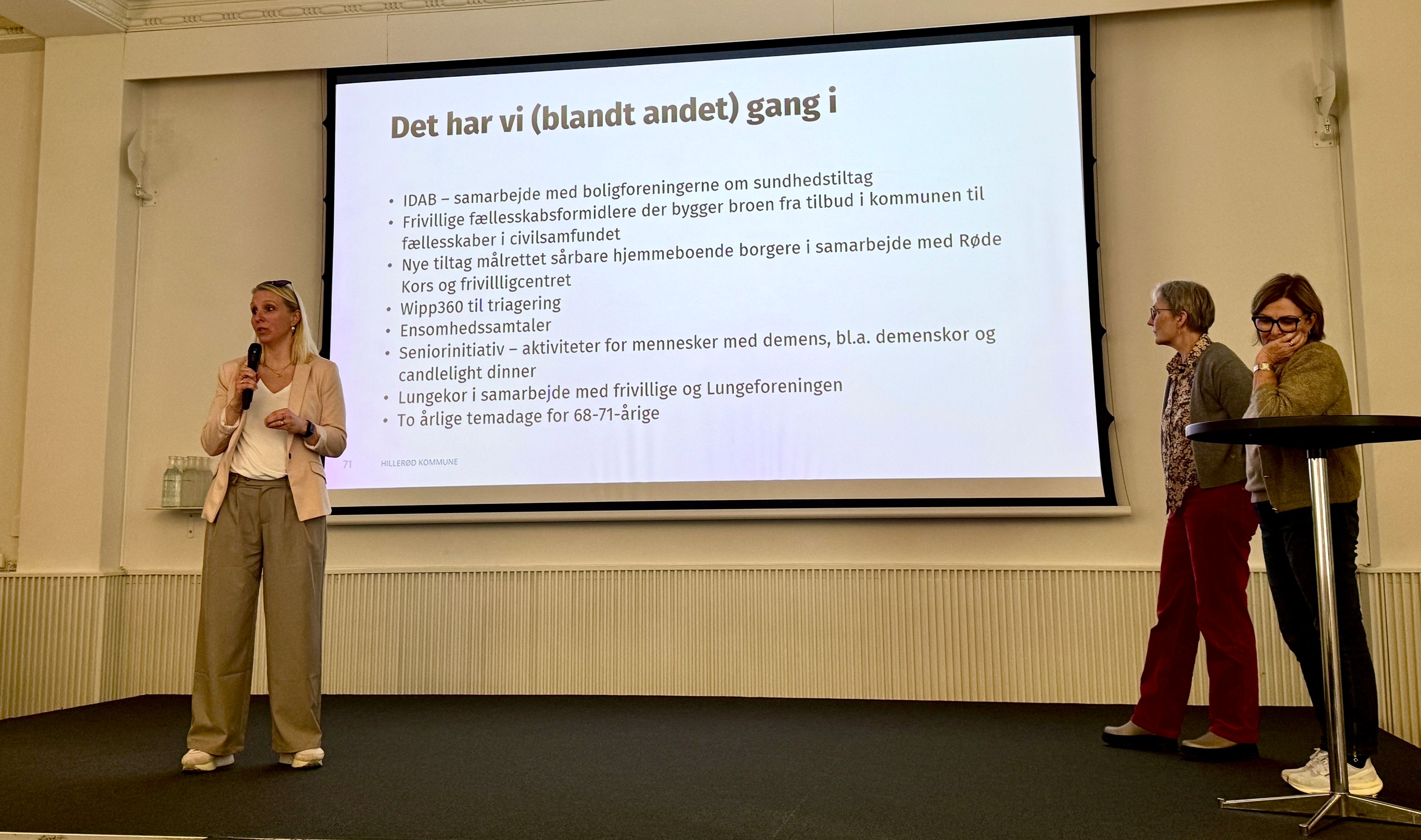 Flere tiltag kører med succes i Hillerød Kommune. Der afholdes temadage for de 68-71 årige under overskriften “fra arbejdsliv til sundt seniorliv”, ensomhedssamtaler og der oprettes demens- og lungekor.