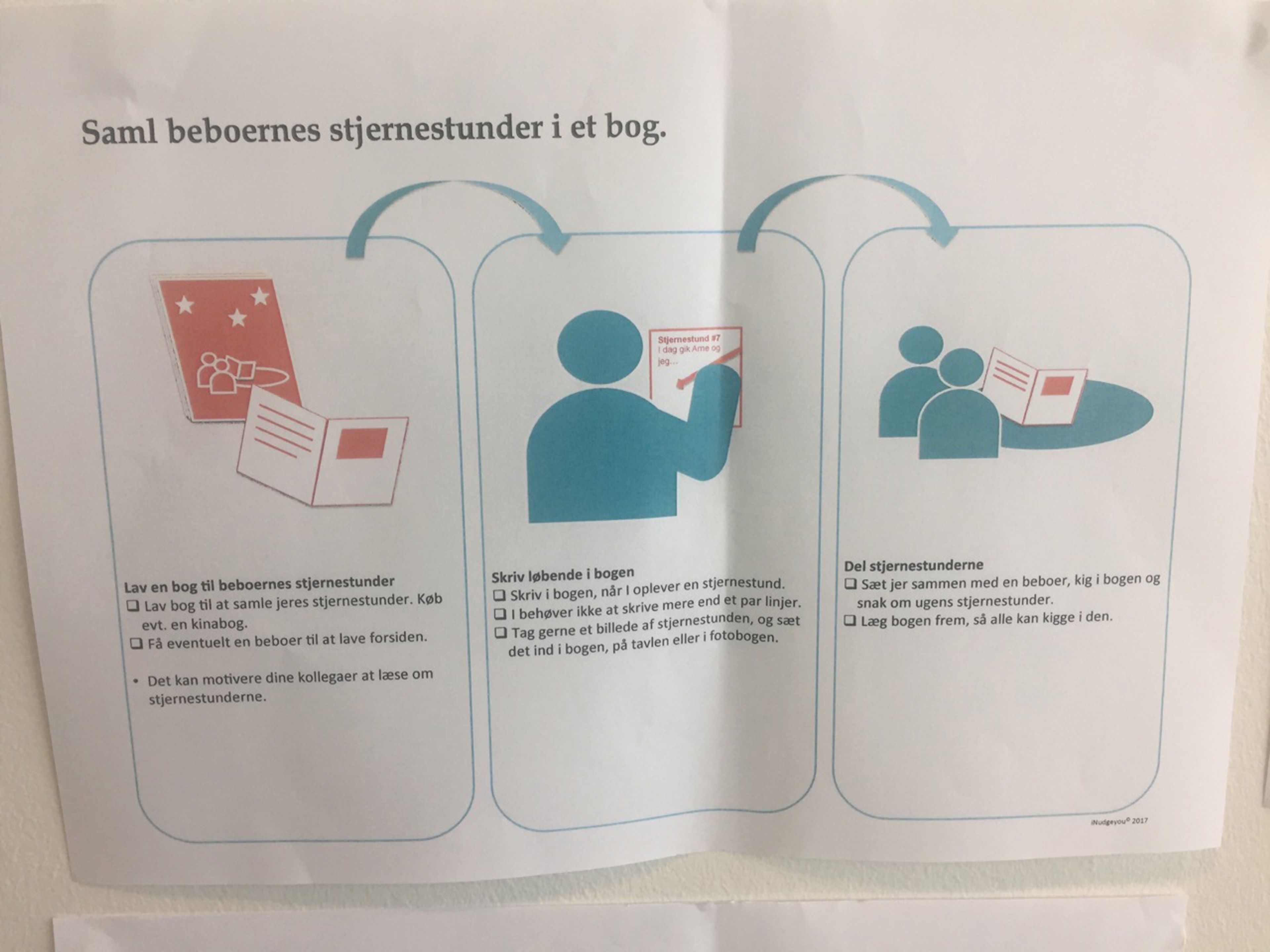 Fotobog med stjernestunder og nudging-plakater har været med til at bryde vaner på plejecenter i Lyngby-Taarbæk Kommune. Udfordringen ligger nemlig i at få omsat den teoretiske viden til en ændring i den daglige praksis.