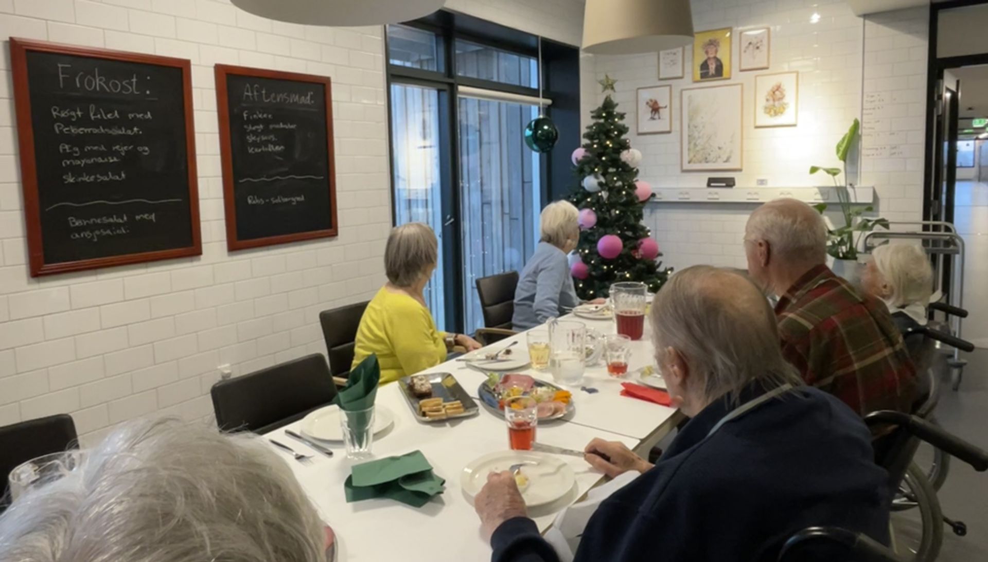 Der kom billeder på væggene, blomster i vaserne og servietter og lys på bordene. Der kom også store tavler op på væggen, hvor køkkendamen hver formiddag skriver, hvad dagens menu er og får en sludder med borgere.