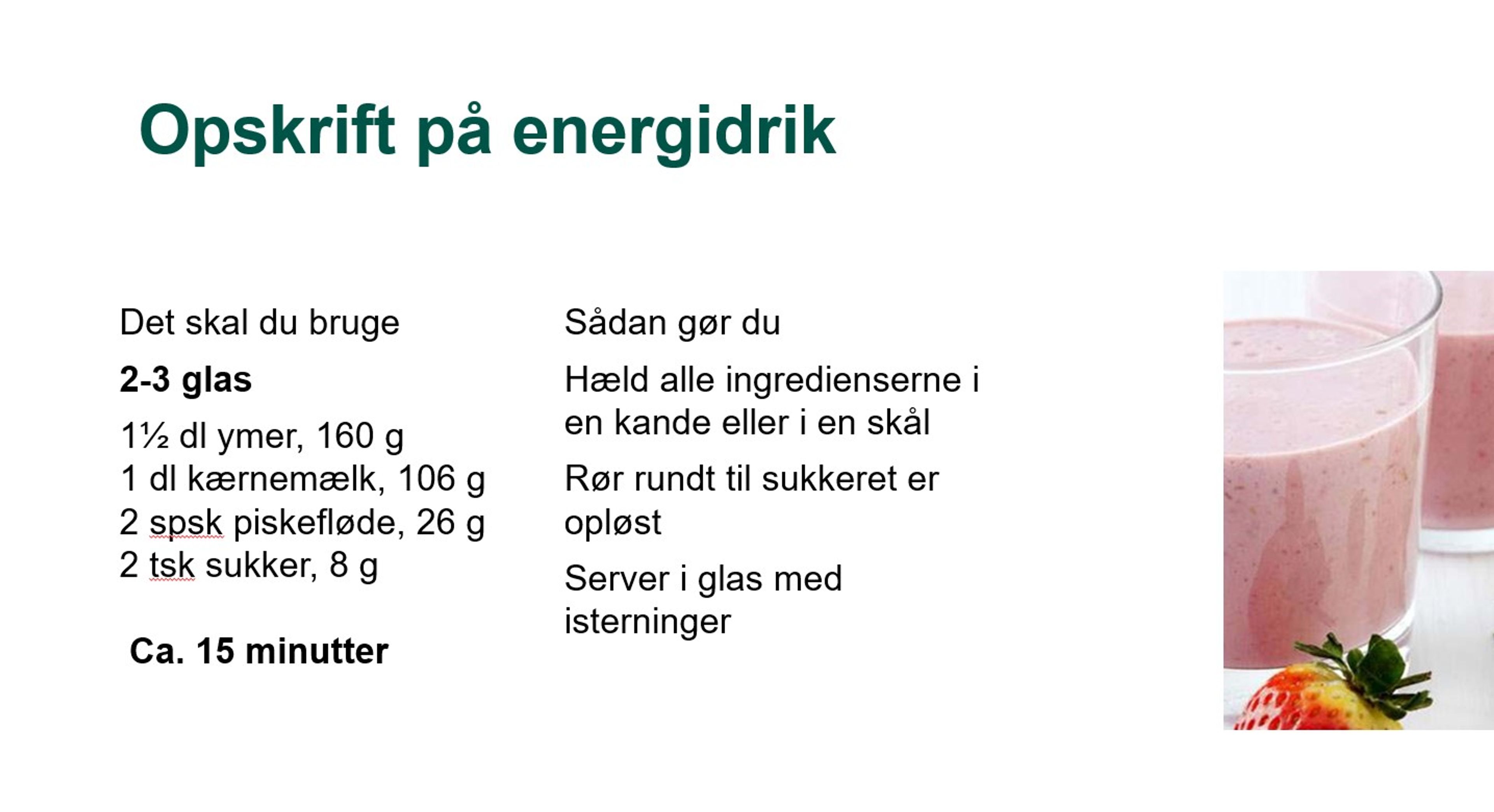 Postkort med opskrift på proteindrik