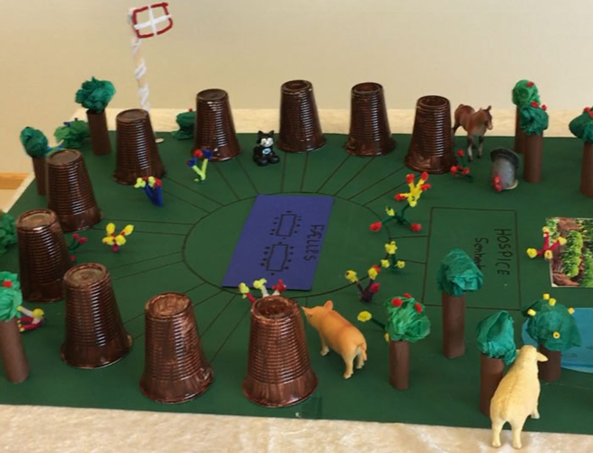 De har selv udviklet ideen om, hvad det ’ideelle’ plejecenter i deres øjne skal kunne tilbyde og lavet en fysisk model af plejecentret i pap og plastikkrus, som de har præsenteret for de andre elever på skolen.