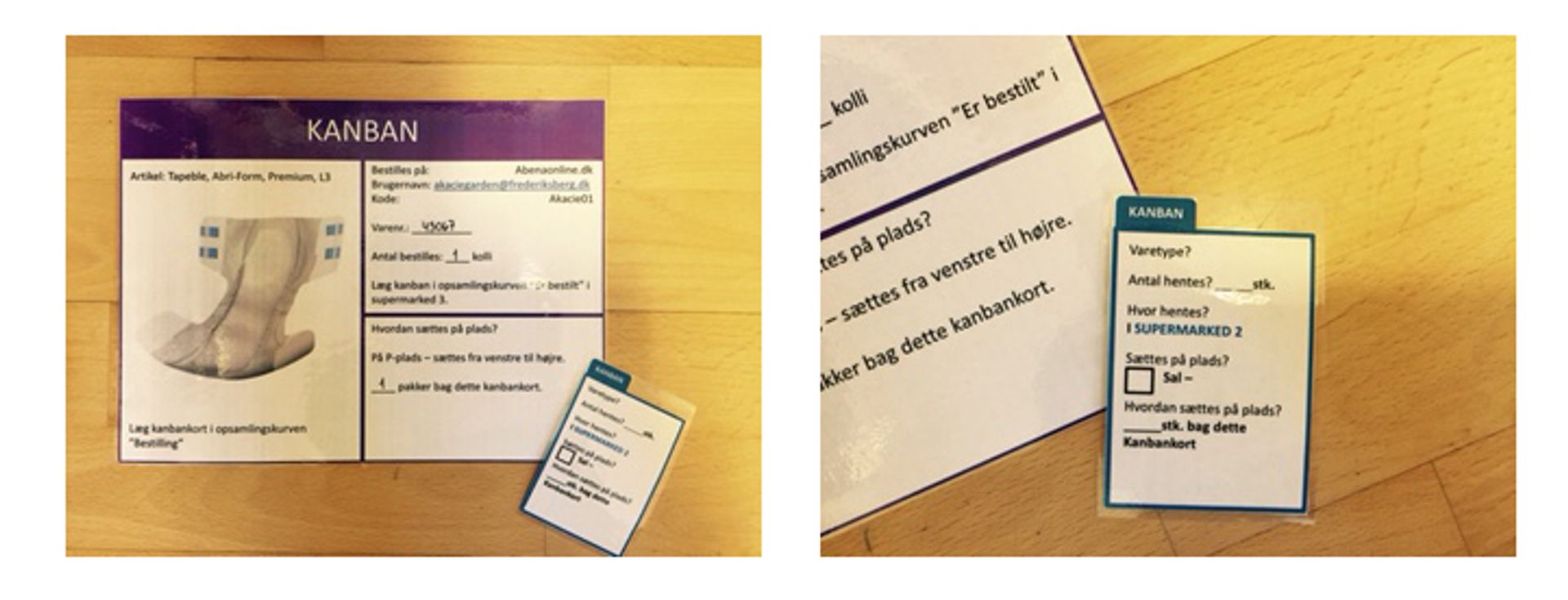 Overalt på plejecenteret ligger små kort gemt. I rækkerne af yoghurt, i stablerne af håndklæder og bleer. Kortet kaldes et Kanban kort, og er en slags ’husk-at fyld-op-kort’, der sørger for personalt altid husker at fylde op, så de aldrig løber tør for de ting de skal bruge til plejen.