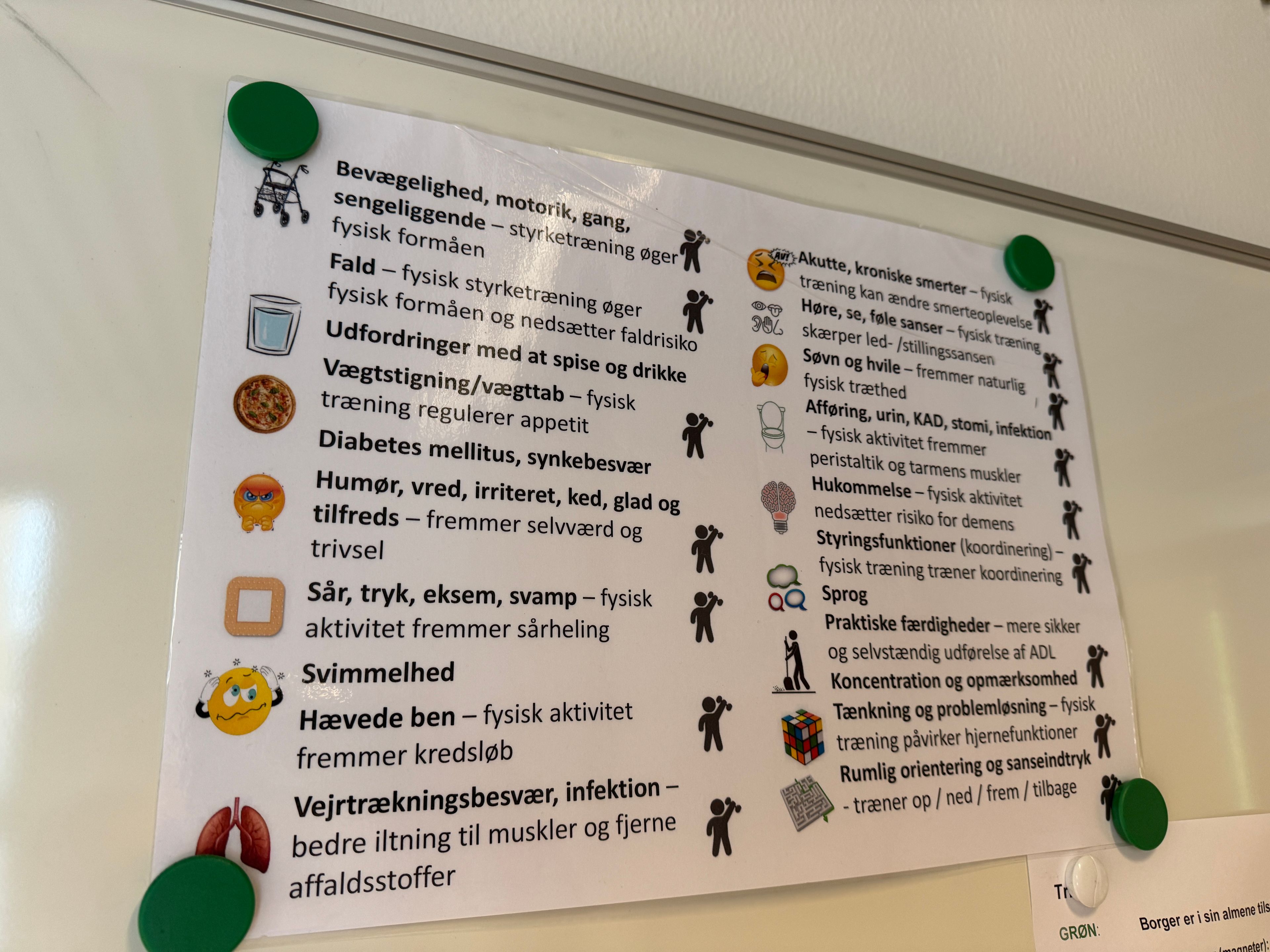 Der er også magneter, der beskriver, at en borger skal have målt puls og blodtryk eller have ført væskeskema.