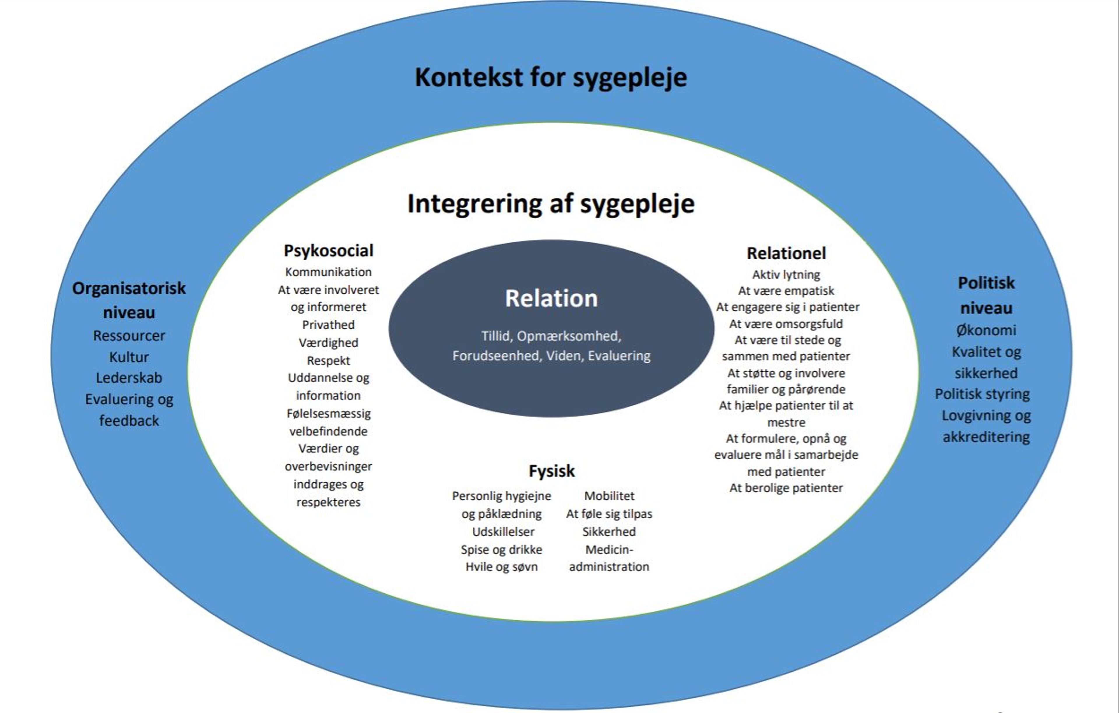 - En dimension, der fokuserer på integrering af pleje identificeret og prioriteret ud fra borgerens fysiske, psykosociale og relationelle behov.