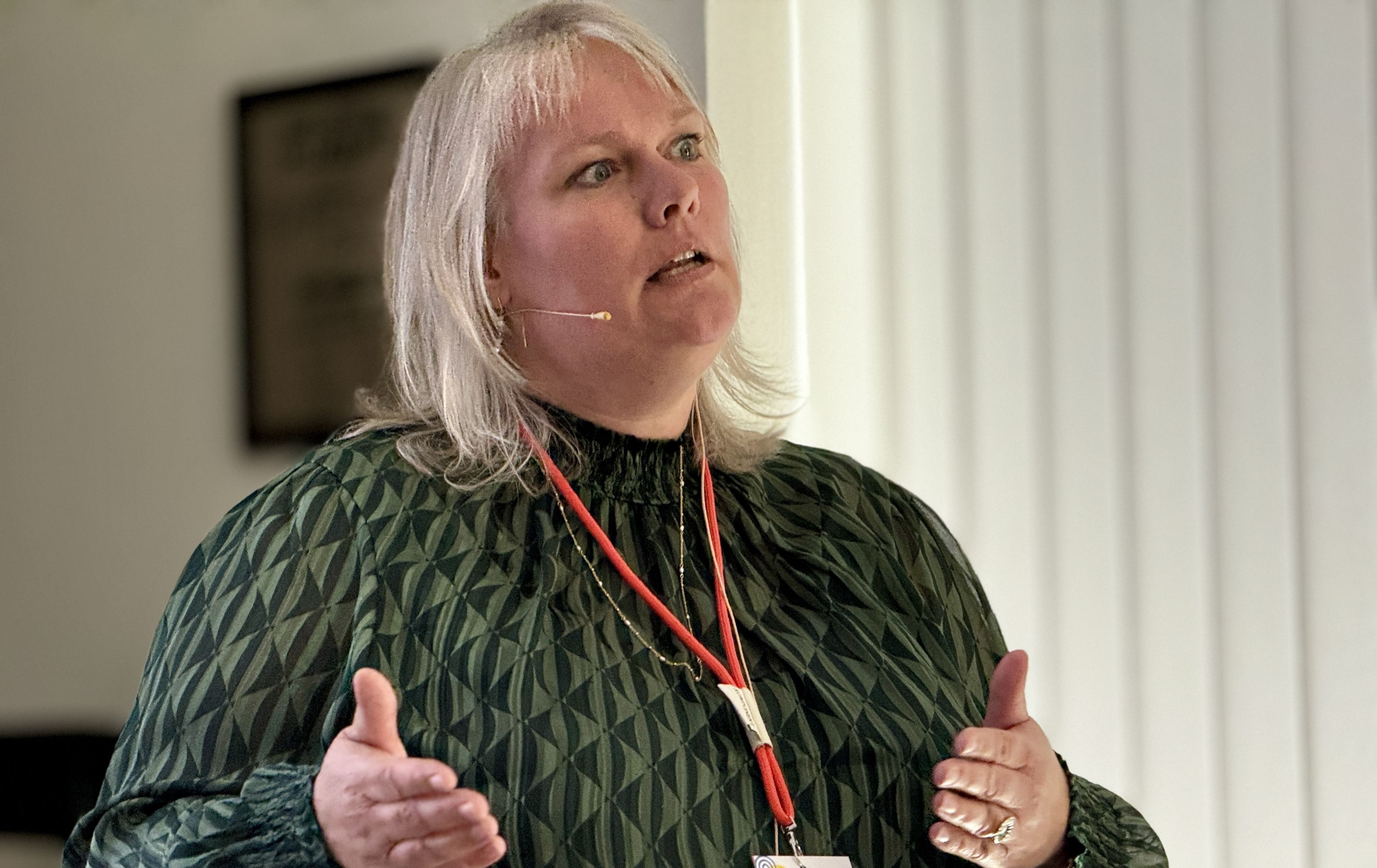 Dagens anden hovedtaler var psykolog Rikke Høgsted fra Institut fra belastningspsykologi, der har speciale i psykologisk tryghed. Hun fik deltagerne op af stolene med en pixibog med øvelser til at øge den psykologiske tryghed.