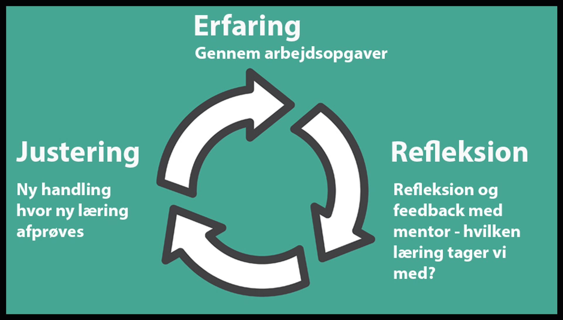 Mentor hjælper den nyansatte med at sortere i det nye og vurdere, hvad der fungerer godt, og hvor man kan sætte ind med justeringer, næste gang man er i en lignende situation.
