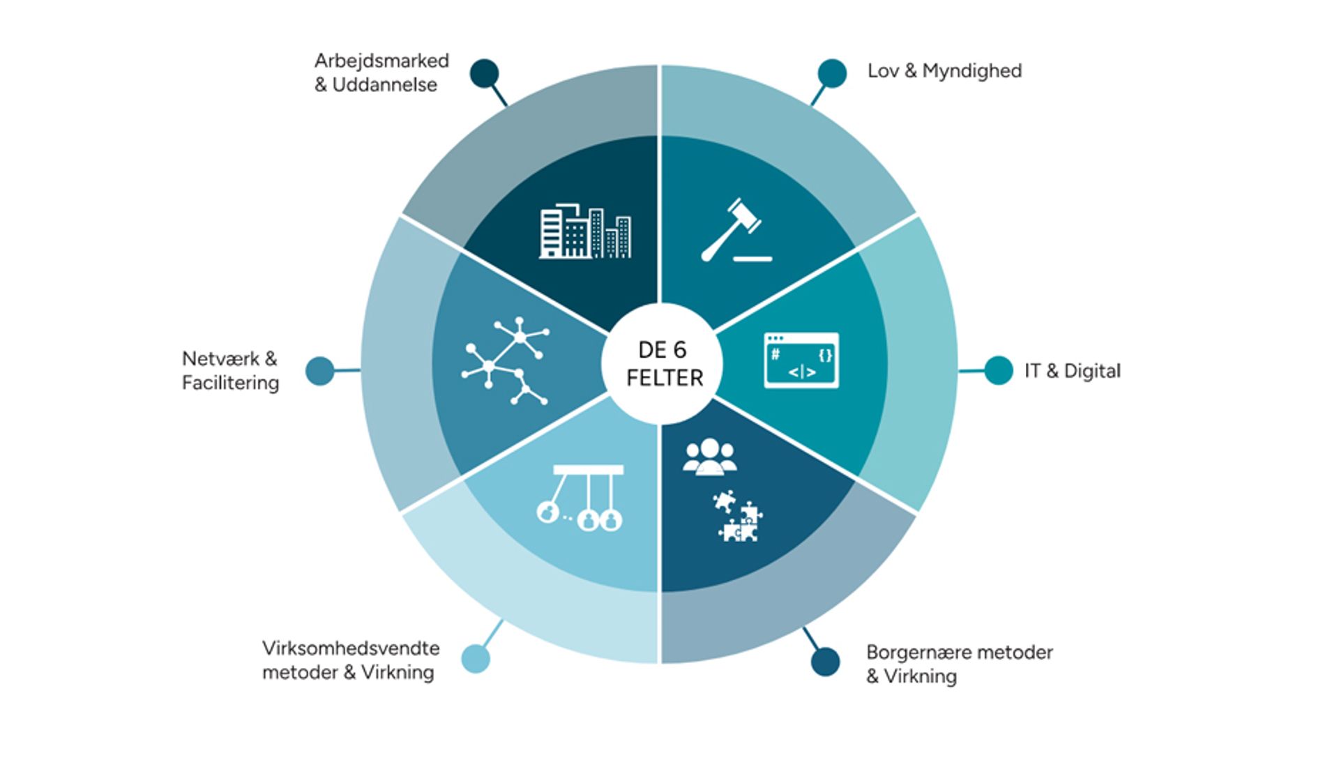 I materialet er der identificeret seks centrale videns- og kompetencefelter, som er nødvendige for at skabe kvalitet og helhed i beskæftigelsesindsatsen.