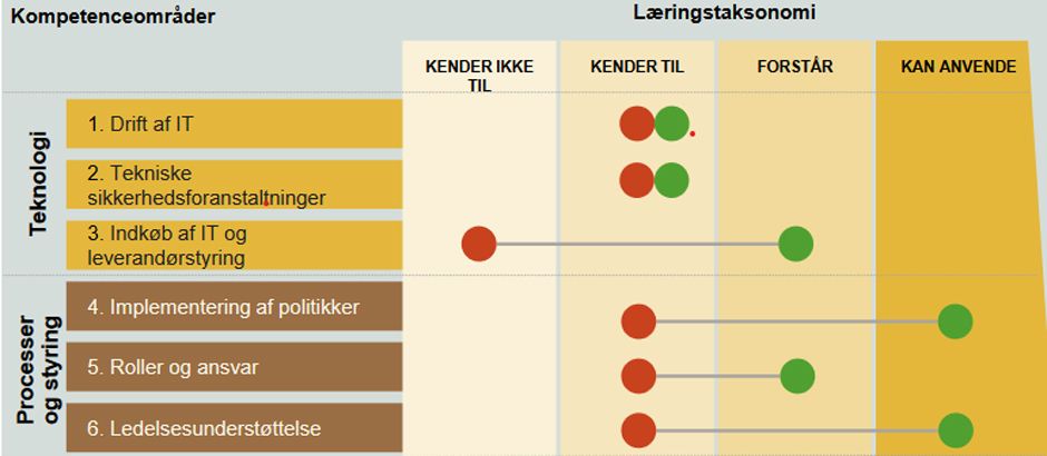 Den peger på, hvilke områder inden for informations- og cybersikkerhed der er særligt relevant at styrke kompetenceudviklingen indenfor, så den matcher målgruppens nuværende kompetenceniveau og understøtter fremadrettede behov.