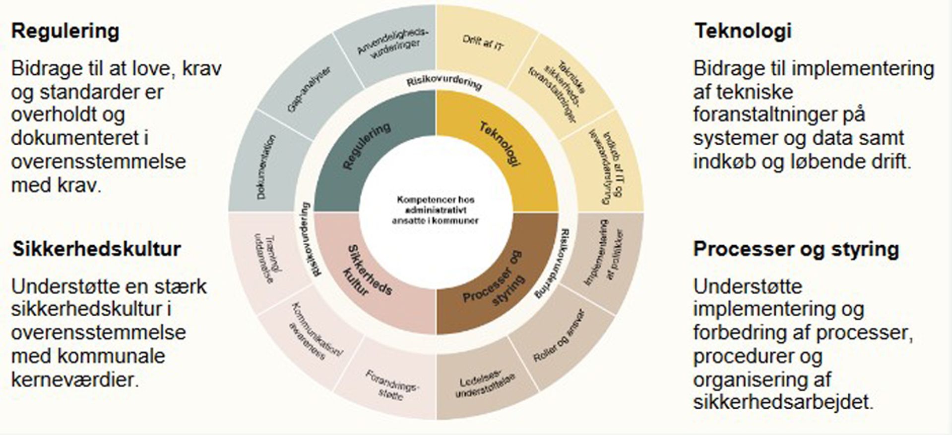 På baggrund af den viden har projektet udviklet et kompetencehjul, som peger på de kompetencer, som skal være til stede for at sikre en god informations- og cybersikkerhed i kommunerne.