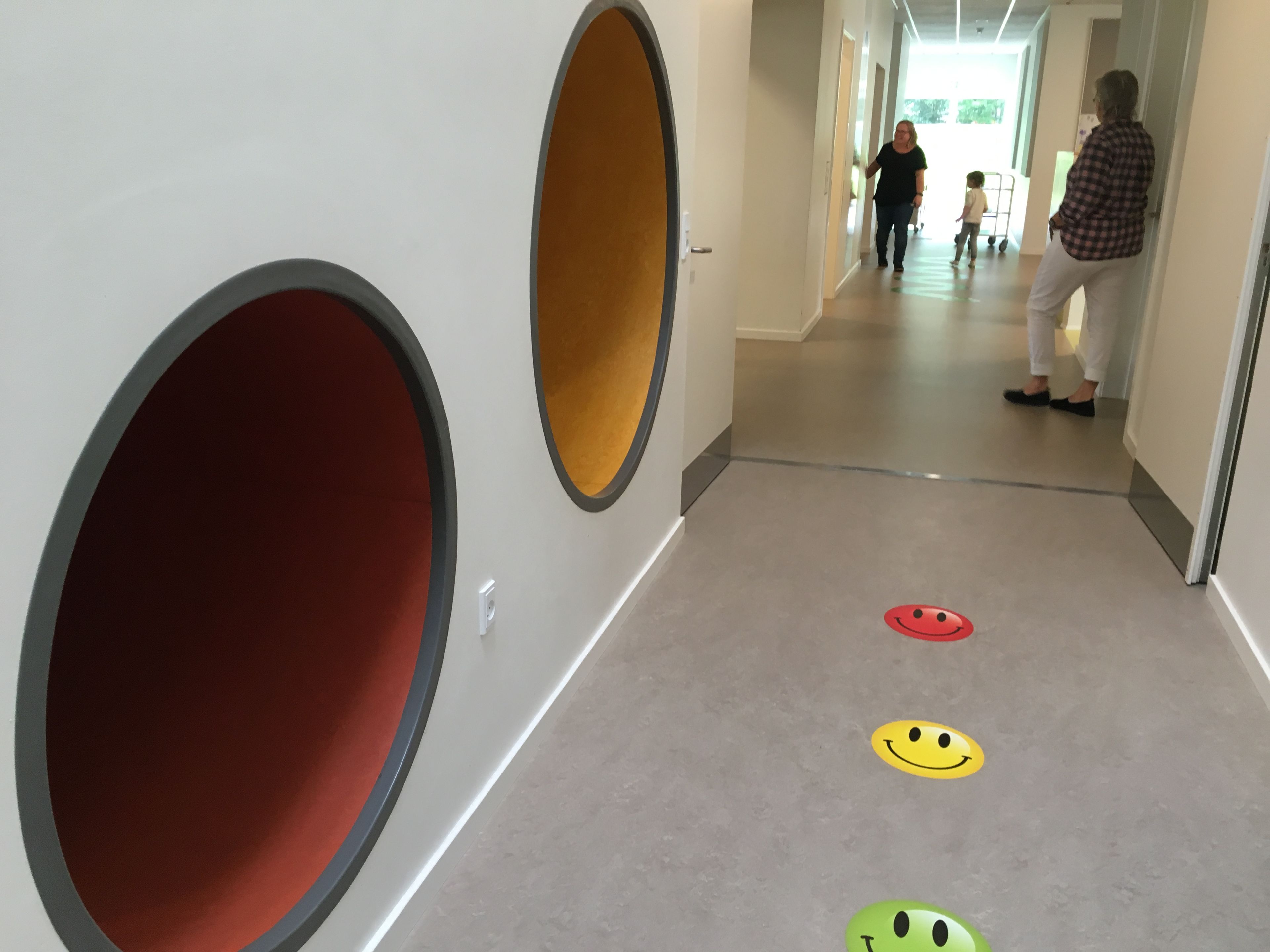 Det klassiske store fællesrum, hvor der er plads til alle 148 børn på én gang er blevet fravalgt for at få plads til de mindre rum, og personalet lægger blandt andet vægt på, at der ikke er ’banegårdsstemning’ på de mindre fællesarealer.