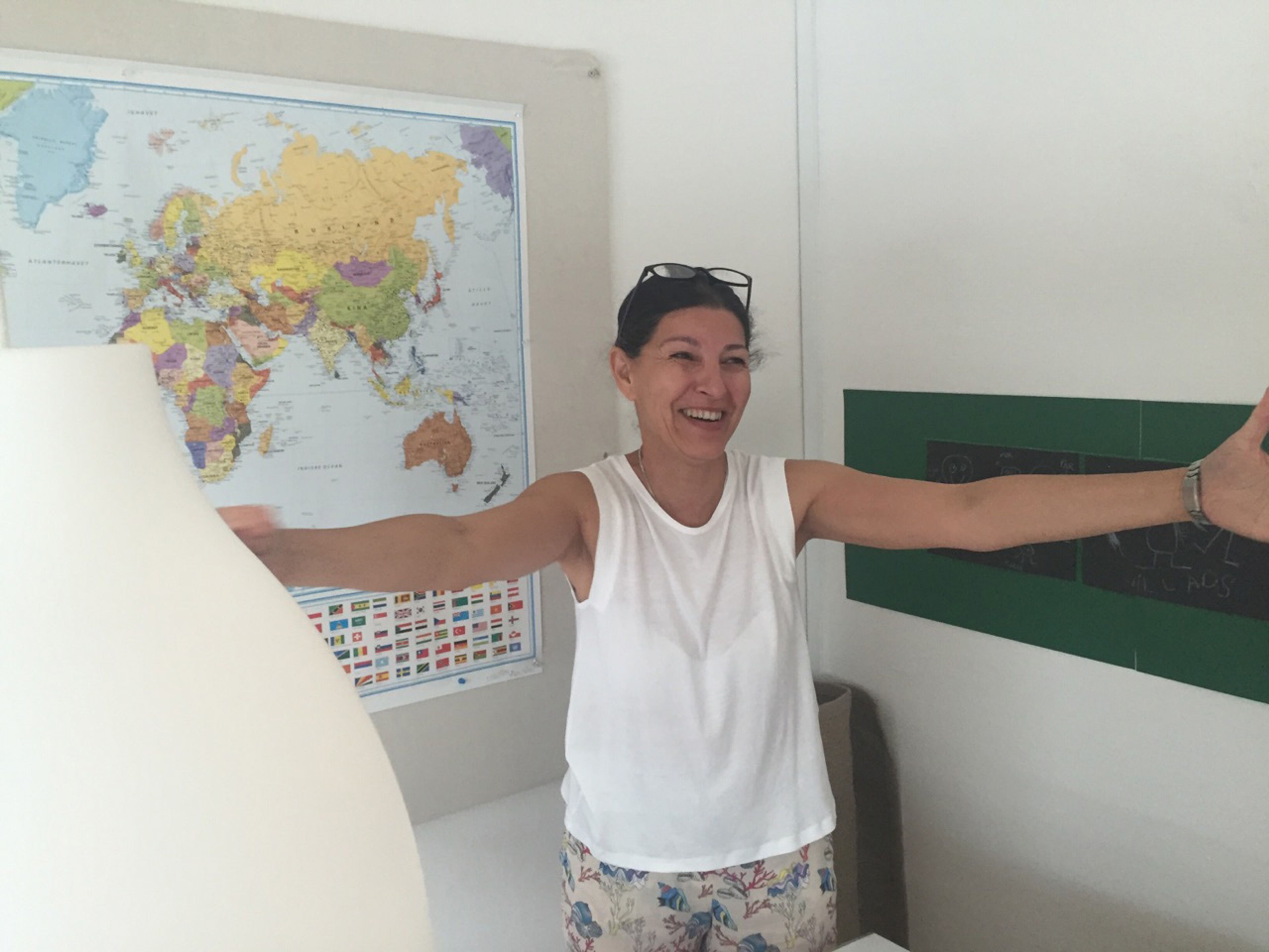 De skøre ideer og lysten til at give børnene en anderledes oplevelse driver hende. En af hendes ideer er at lave yoga med børnene. Så indimellem ruller hun yogamåtterne ud og viser børnene, hvordan de skal være ”frøen, slangen og hunden”.