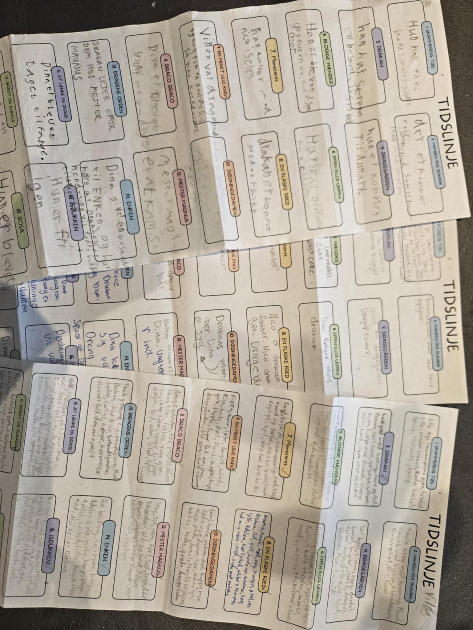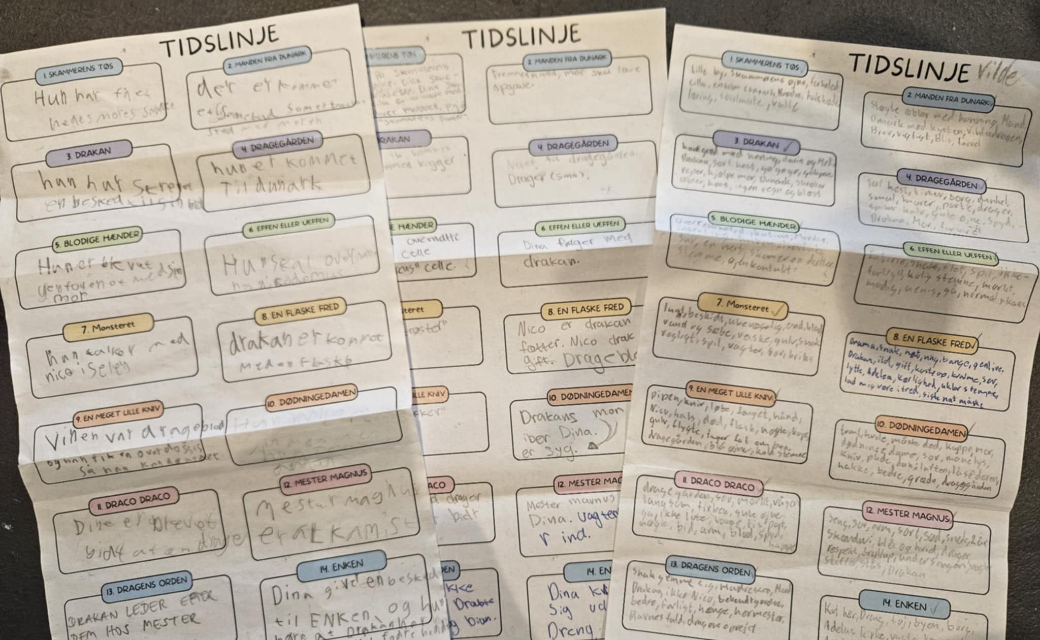 Eleverne skulle i grupper vælge og planlægge den scene, de ville opføre. Og her blev hukommelsen hjulpet godt på vej af bogmærker, hvorpå eleverne havde skrevet noter til hvert kapitel undervejs i læsningen.