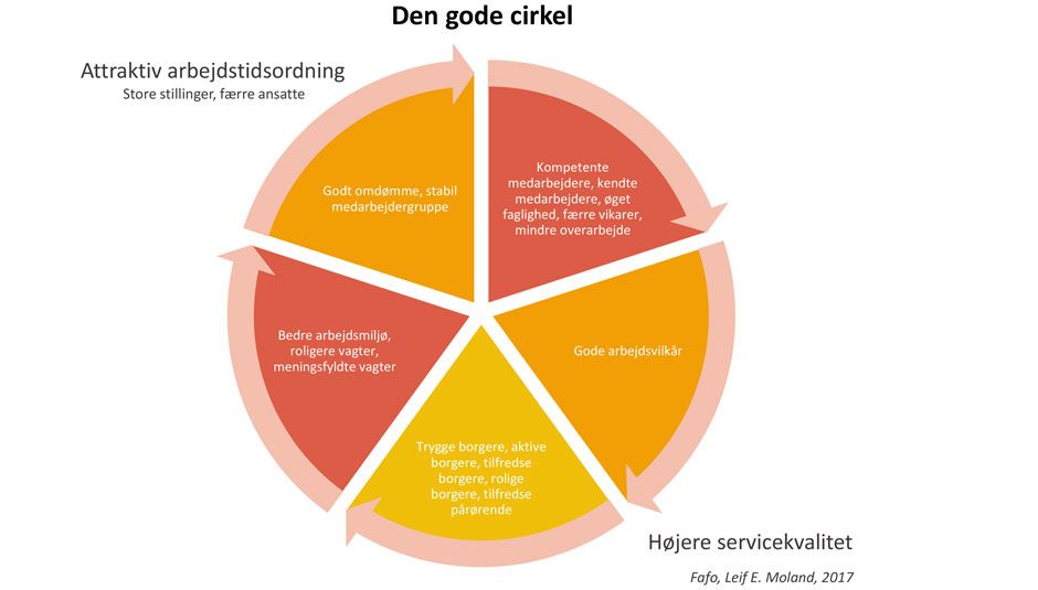 - Der findes ikke en eneste kommune i Norge, som er lykkes med at udvikle en fuldtidskultur i en hel sektor. Men vi har fundet nogle tiltag, som virker godt, og det er særligt lange vagter under nogle særlige forudsætninger, siger han.