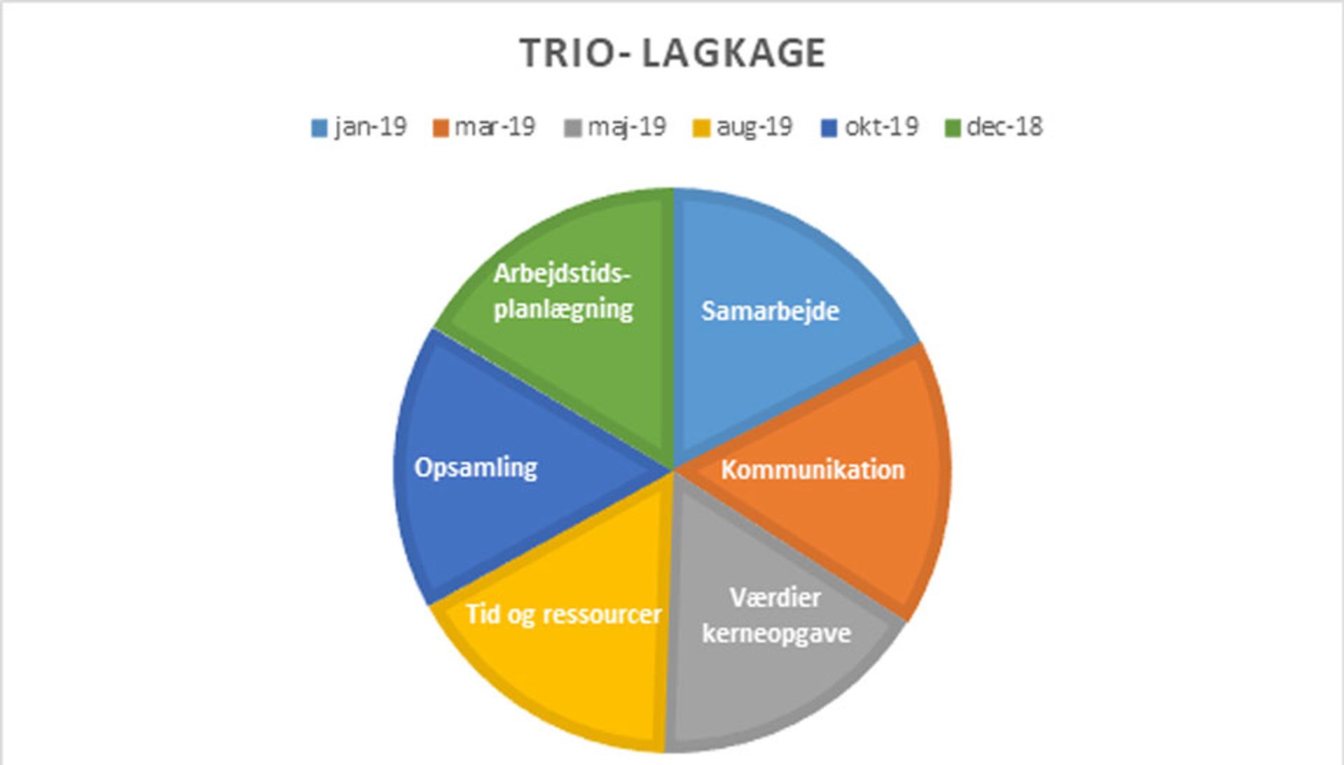 TRIO-møderne er blevet lagt fast i kalenderen, og ved hvert møde bruges nu en skabelon til dagsorden med faste punkter, hvilket har skabt systematik og overblik. Derudover har gruppen lært at bruge et værktøj, som giver nogle langt mere produktive møder end førhen.