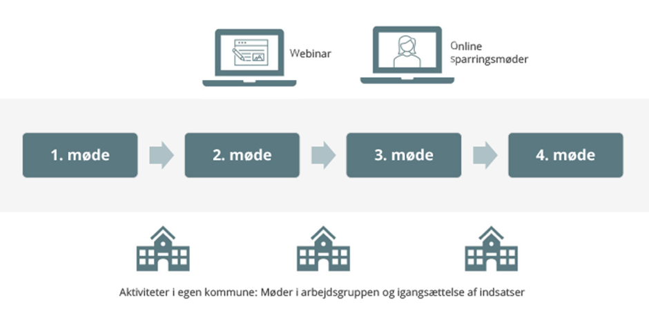 Mellem hvert møde vil der være webinarer og mulighed for online møder, hvor deltagerne sparrer med hinanden og konsulenter fra Human House.
