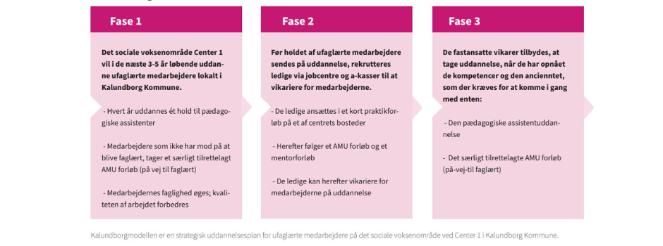 Og hvad gør man så, når det er behov for flere faglærte til at løse kerneopgaven? I Kalundborg er svaret kompetenceudvikling af de medarbejdere, centret allerede har.