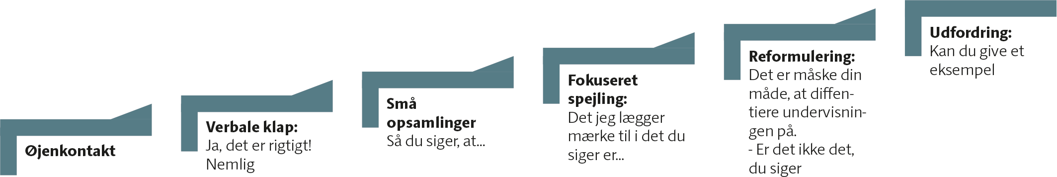 Lederen skal lytte aktivt som i en superviserende samtale og gerne samle op, spejle og tilbyde positive reformuleringer undervejs, som er afstemt med relationen og situationen.