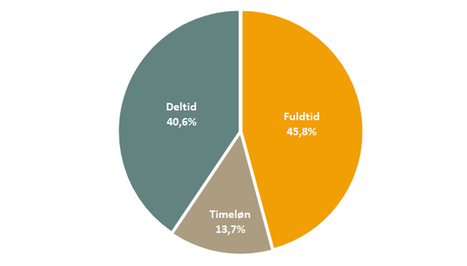 Der er også udarbejdet et datasæt, som I kan dykke ned i, som et led i forberedelsen af drøftelserne. Det viser for eksempel den samlede andel af deltidsansatte i kommunerne og landsgennemsnittet for fuldtid, deltid og timelønnede på udvalgte stillinger, som kan være brugbar viden i forhold til jeres kommende tiltag.